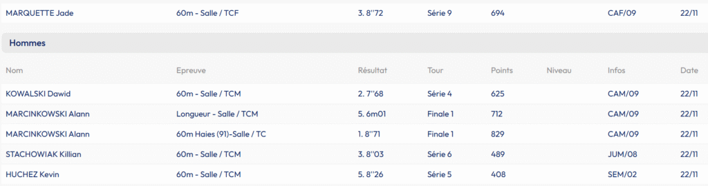 Les résultats: les Résultats des Compétitions | Fédération Française d’Athlétisme